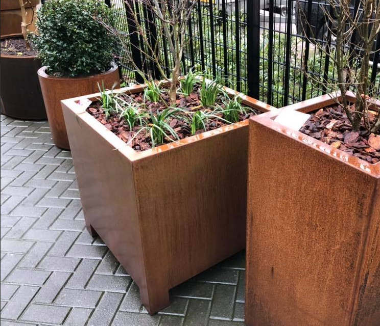 Bent u op zoek naar een Cortenstaal plantenbak die net even anders is? U kunt uw Cortenstaal bakken op maat laten maken bij Limtrade.be! Zo kunt u bij Limtrade.be een Cortenstaal plantenbak met een speciale afmeting of vorm laten maken. Plantenbakken met speciale afmetingen zijn bijvoorbeeld vervaardigd uit 3 MM dik Cortenstaal of hebben een afwijkende lengte, breedte of hoogte. Voorbeelden van plantenbakken met speciale vormen zijn zeshoekige of L-vormige plantenbakken. Zie onderstaande twee foto’s voor een impressie.